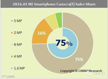 图8. 2016年1月 小米智能机前置摄像头像素销量比重