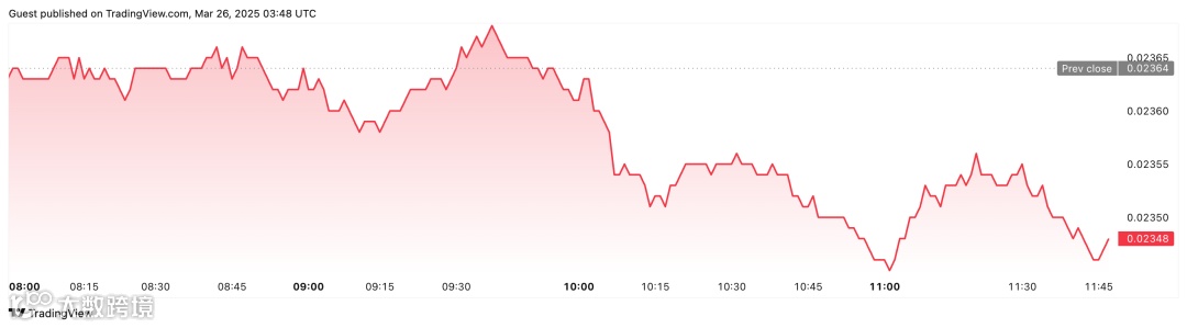 与此同时,根据 TradingView 的数据显示,ETH/BTC 比率(用以体现以太币相对比特币的强弱程度)处于自 2020 年 5 月以来的最低点,数值为 0.2348 。截至本文发布时,ETH/BTC 比率为 0.02348.