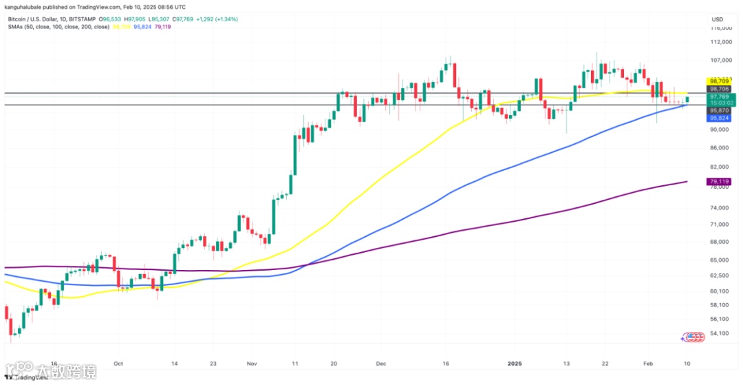 2 月 5 日,BTC 价格跌破 50 天简单移动平均线 (SMA),即 99,709 美元。 -