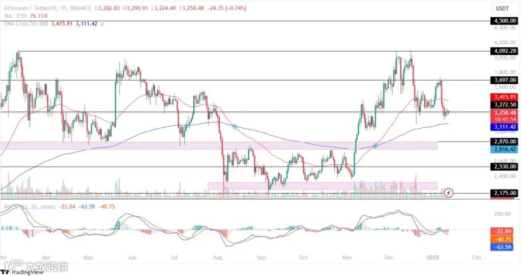 维持价格高于支撑/阻力位 3,272 美元,可能为该山寨币重新测试 3,700 美元的高点奠定基础。相反,看跌情绪加剧可能会将价格拖至本月 3,100 美元的低点。