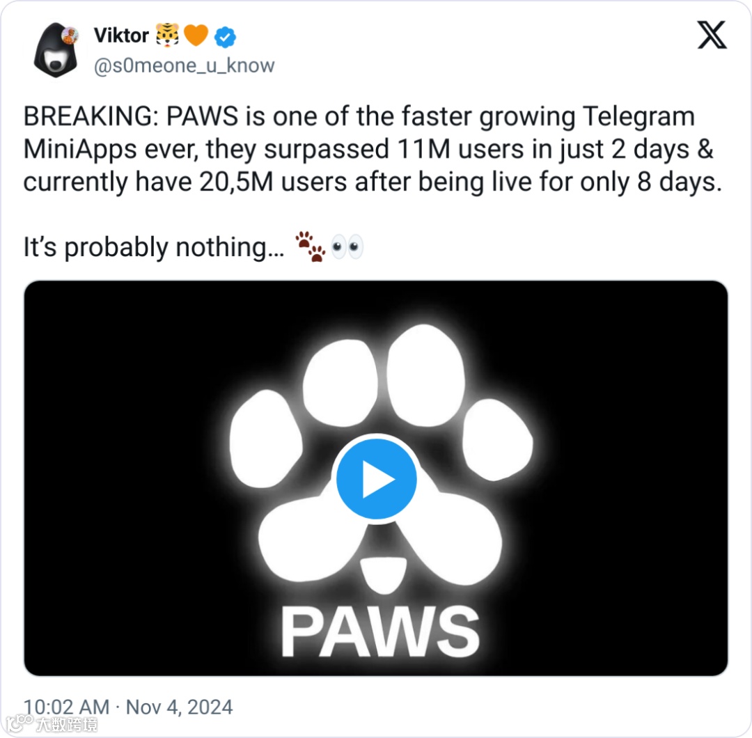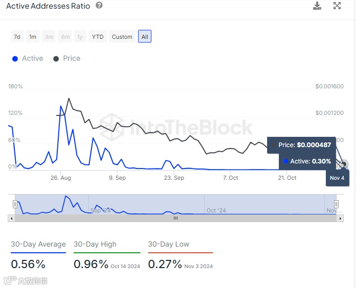 图表显示了 8 月底至 11 月 4 日期间 DOGS 代币的 AAR。