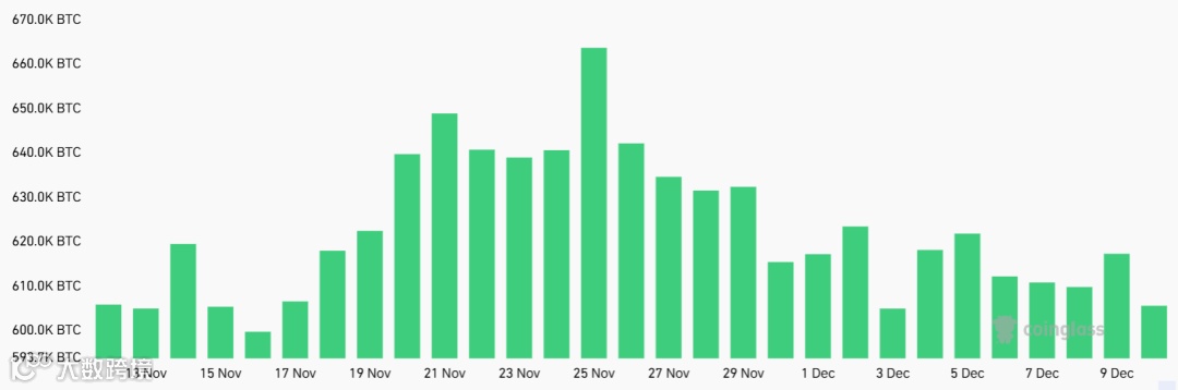 MicroStrategy、Riot Platforms和Marathon Digital(MARA)近几周一直在积极购入比特币。在12月2日至12月8日期间,MicroStrategy以平均每枚比特币98,783美元的价格购入了21,550枚比特币,总价值高达21亿美元。与此同时,矿商Riot Platforms通过借贷筹集了5亿美元,主要用于收购比特币。MARA也大幅增加了比特币持有量,在同一时期其资产负债表中增加了11,774枚比特币。