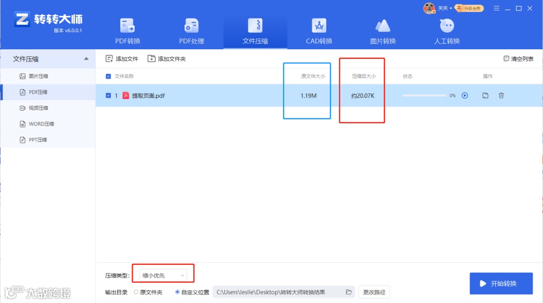 打开转转大师后,点击“文件压缩”,再点击“PDF压缩”,添加PDF文件,即可进行压缩操作。