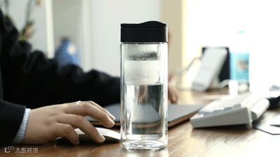 在水杯中倒入热水,拧上杯盖,就算是完成准备工作了。