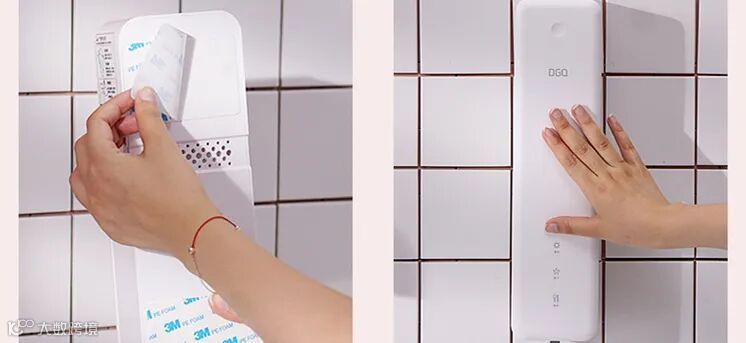 撕开背面的3M胶带,往墙上一粘,就安装好了。