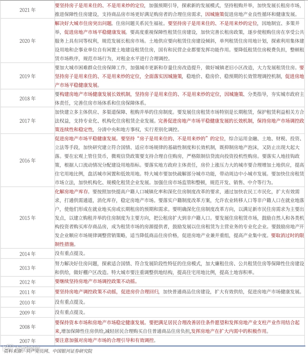 我们认为本次会议针对房地产的表述可以从以下两个方面理解:第一,房地产的表述依然出现在化解重点领域风险的部分,延续了2022年以来的做法。这意味着促发房地产政策出台依然来自底线思维;第二,房地产的调控政策框架依然是“房住不炒”+“因城施策”。