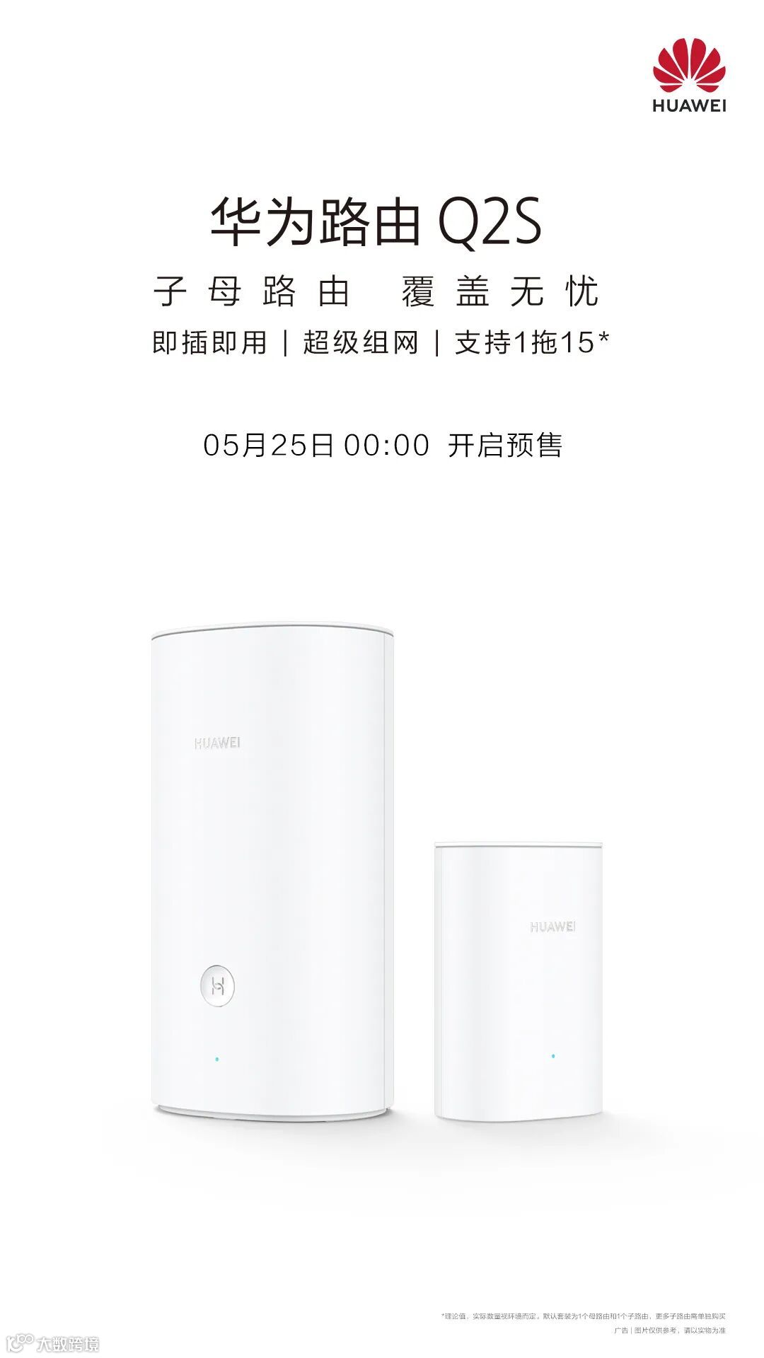 1.本次上市套装华为路由Q2S 1母1子装和单子装,用户可根据户型增加单子装扩展Wi–Fi,其他套装敬请期待