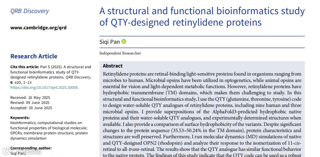 就这样,Emily 在张院士的带领下,开始用 AI 工具研究蛋白质。经过大半年时间,她以第一作者的身份在剑桥大学出版社旗下的学术期刊发表论文。我在朋友圈分享了 Emily 发文的喜讯后,很多朋友来咨询我。好几个家长要求我提供张院士的联系方式,于是我询问张院士是否可以让更多的中国孩子参与到他的科研项目。张院士也欣然应允。