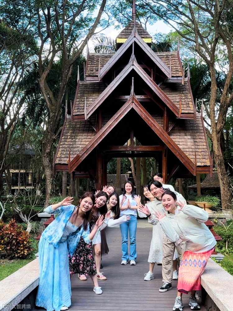 人和创建美丽的女生们来到西双版纳自然要享受一番“为妃作傣”的快乐。平日大家都是自信飒爽的女强人形象,换上傣族特色服饰后又显得那么的娇俏可爱。