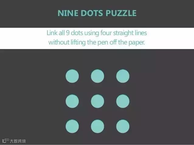 你的笔不能离开纸面,如何用4条直线连接这9个点?