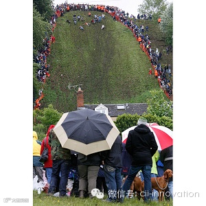 这玩意在其他地方可能只有一个娱乐游戏,而在Cotswold 就正儿八经的叫做The Cotswold Olimpick Games(The Cotswold 奥林匹克运动会),游戏的方式很简单如图。每一年当地Spring Bank Holiday 之后的一个周五,人们便会聚集到一起比赛那一组跑得更快。