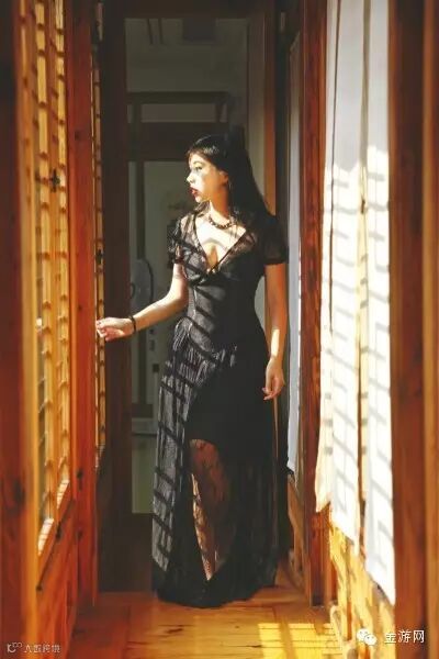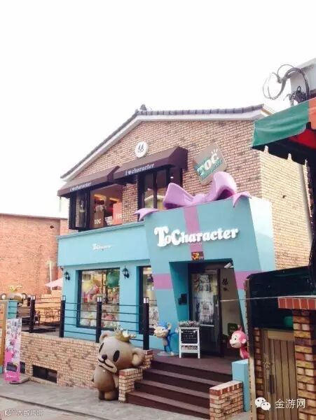 远远看见一个韩服文化馆,挂在那的粉红色韩服好像一个小心偷窥外面世界的少女。