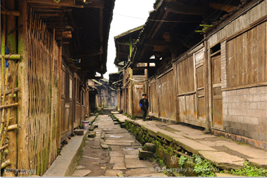 望鱼古镇在成都以北一百多公里以外的雅安地区。但因为在四川的每一处旅游,我都以成都为中心,所以偏执地,把离成都不远的地方自作主张地归入“恋恋成都”的范围。望鱼古镇是昔日茶马古道进出成都的重要驿站,还是雅安著名特产“雅鱼”的产地。因为主要建筑坐落在一突兀于山腰的巨石上,巨石形似一只守望着周公河游鱼的猫而得名。不过,我这次并没有找到这块巨石