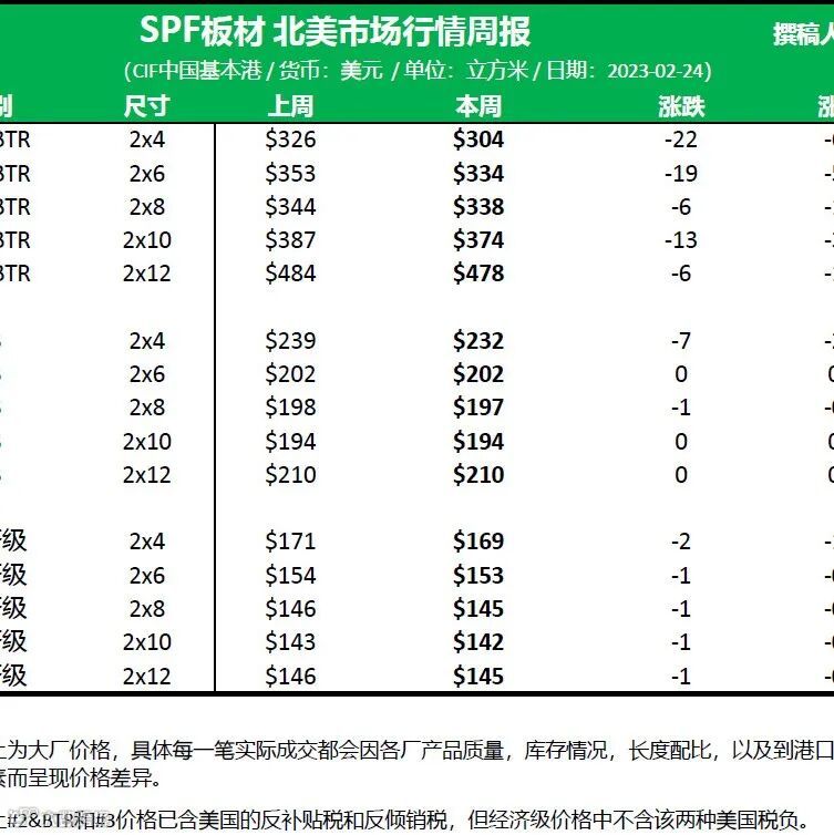 主要是在1月底和2月初已经满足了当时经销商最迫切的需求。即使大量的整体供应被W SPF生产商的全面关闭和缩减,许多客户的超买状况表明冬季库存需求仍然可以很快得到满足或超过。