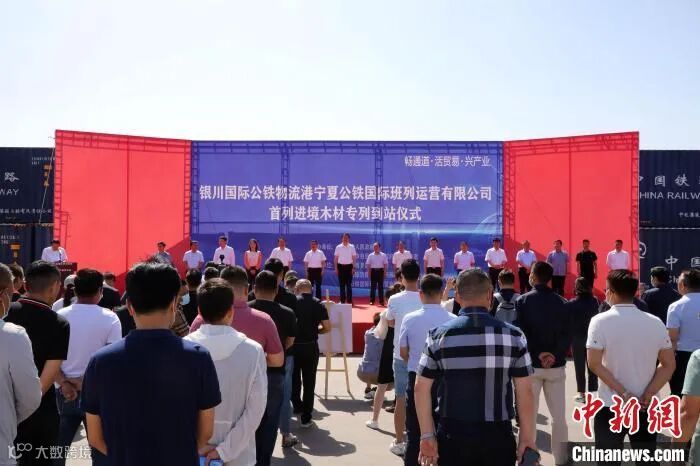 当天上午,银川市人民政府携手宁夏口岸办公室在银川货运南站举行宁夏公铁国际班列运营有限公司首列进境木材专列到站仪式暨产品发布会。