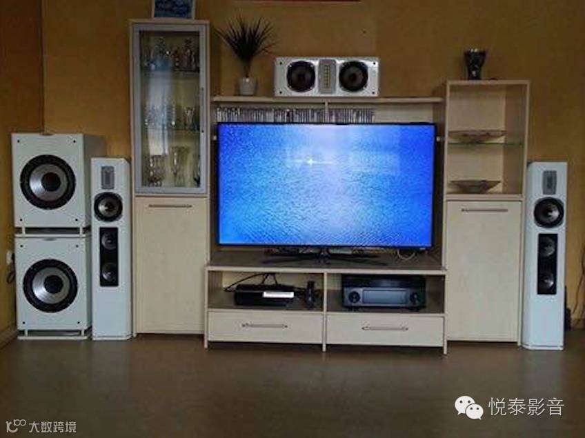 双低音炮的多声道影院配置, 白色音箱让空间大了起来.