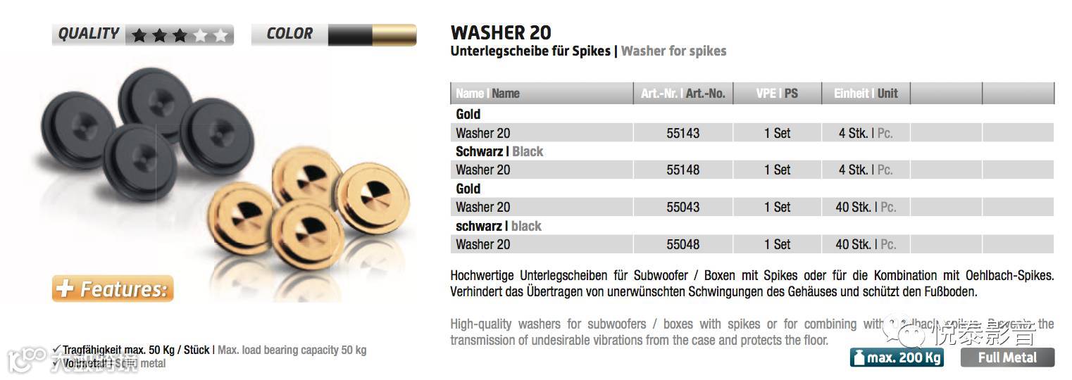 2. 高保真专用金属脚钉垫, 承重 200kg, 一套 4 个, 黑/镀金两种系列选择.