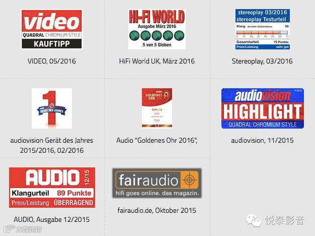 2016, Video 杂志, HIFI World, Stereo Play, Audiovision, Audio " Goldenes Ohr 2016 " 诸多专业高保真媒体的纷纷肯定.
