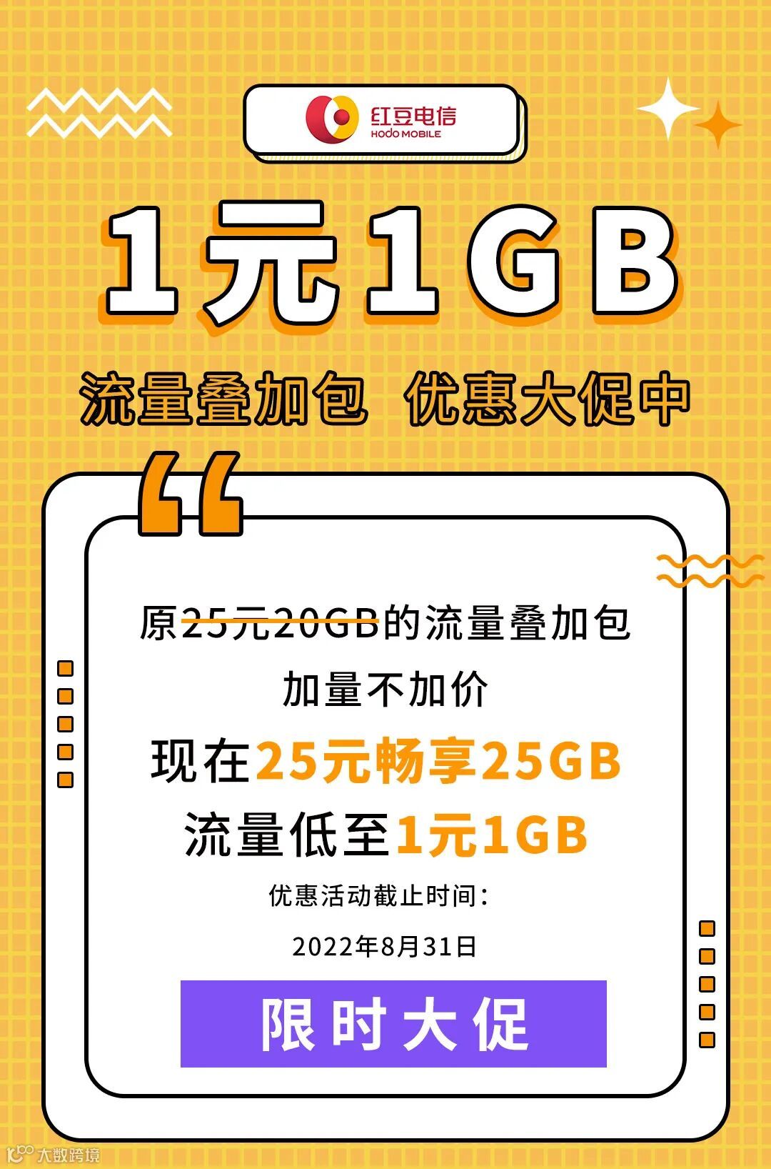 流量叠加包限时促销低至1元1GB
