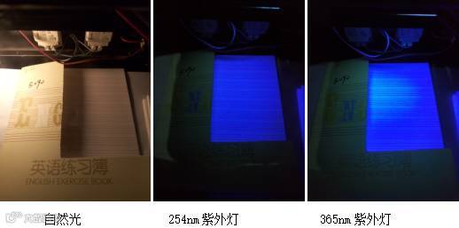 本次风险监测中,苏州质监参照GB/T 20808等标准,对课业簿册封面及内芯进行了荧光性物质的定性检测,分别在254nm波长和365nm波长的紫外灯下观察样品是否有荧光现象。