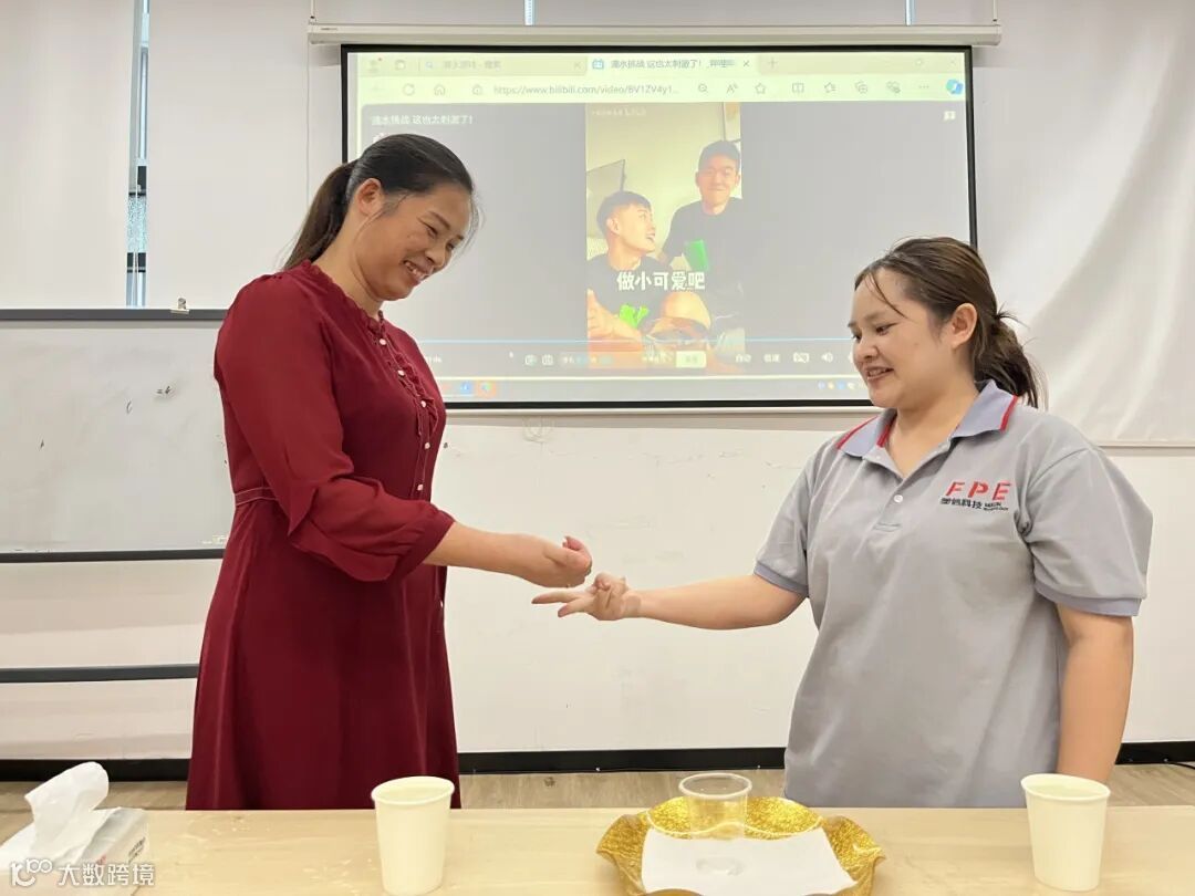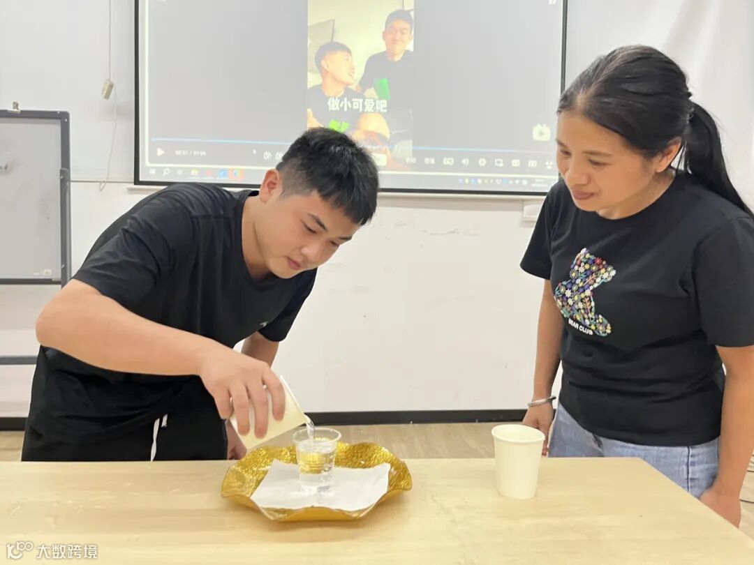 “端水大师”游戏中,两位玩家通过“猜丁壳”决定倒水顺序,现场欢笑连连,沉浸于这场既考验技巧也考验心理的游戏中。