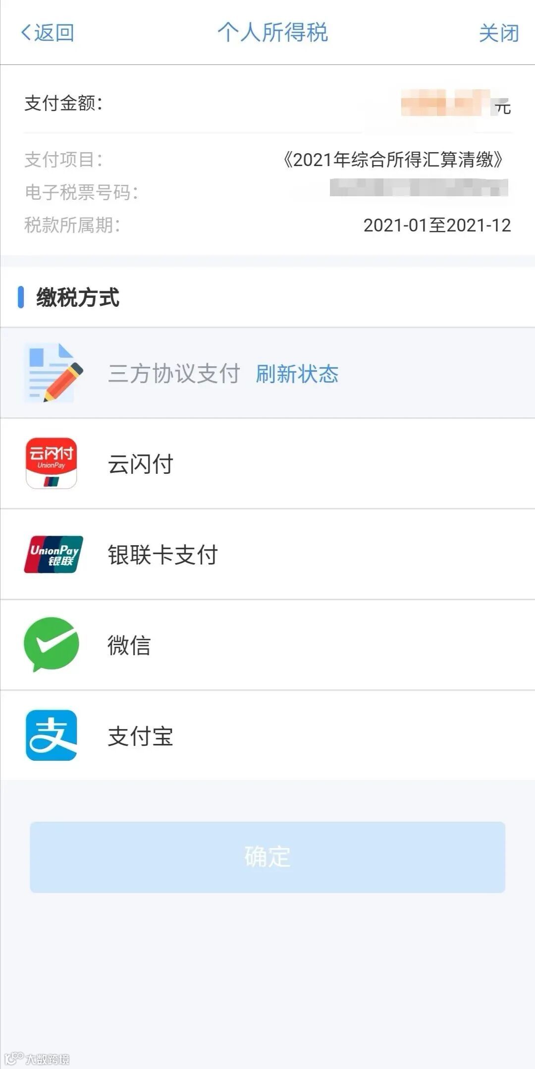申报结果为缴税的,则跳转到缴税页面,您可点击“立即缴税”,通过三方协议支付、云闪付、银联卡支付、微信、支付宝等多种方式完成缴税。