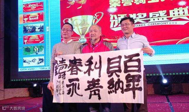 荣誉骑士之不老骑士李老先生(中)为贝纳利现场题字