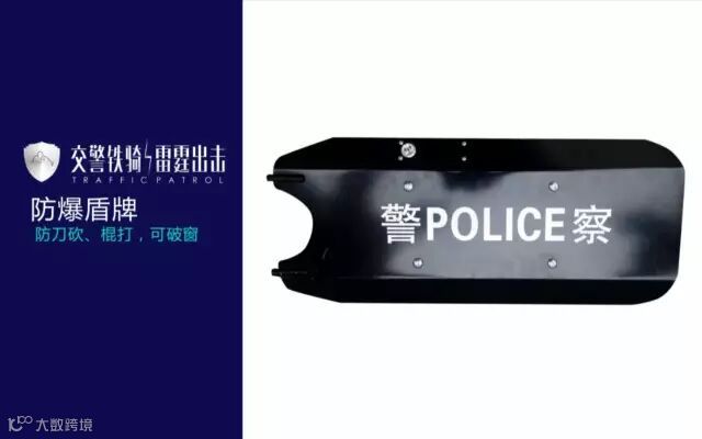 ↓配备的防爆盾牌可以防刀砍、棍打,还可破窗,具有攻防兼备的效果。