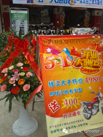 开业期间精彩的展现了“百年贝纳利 今日新钱江”的风采,而“国人当自强 摩托看钱江”的拱门也让不少车迷商家为民族品牌钱江竖起了大拇指。开业期间,还有福建闽下机车俱乐部专程参与武平钱江专卖店开业典礼,激情的大排巡游让武平的老百姓大开眼界,大排量机车的轰鸣声让路人不得不驻足观看。钱江摩托让整个武平县城火了一把,活动效果很好,极大的提高了钱江摩托的品牌知名度和影响力,随后的销售也惊喜不断。