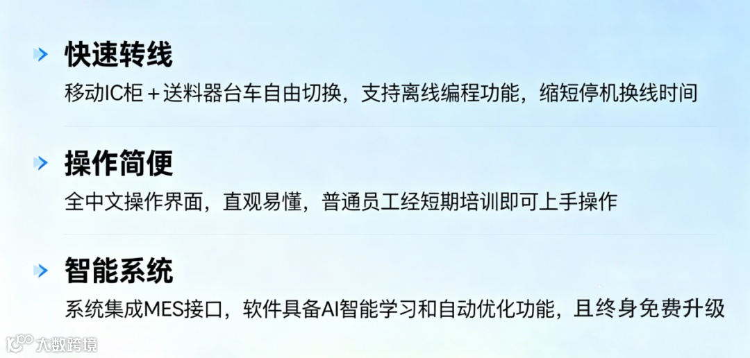 “我们是做PCB代加工的,贴装产品种类非常多,换线也频繁。”一位车间主管说,“自从用了易通贴片机的台车版跟移动IC柜组合以后,极大程度缩短了转线时间,从订单下达到首件产出,整体时间减少了35%以上!在后续产线扩充规划中,也会首选易通贴片机(台车版本)!”
