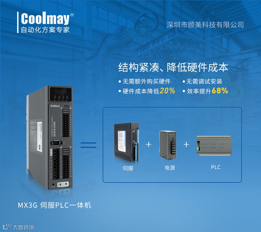 顾美MX3G系列伺服PLC一体机将PLC控制器、伺服驱动器、电源、高速脉冲、高速计数.... 等多个硬件集成为一个紧凑的单元。无需额外购买硬件、无需对比选型、无需安装调试, 降低了客户20%的硬件成本,提升客户68%的使用效率!