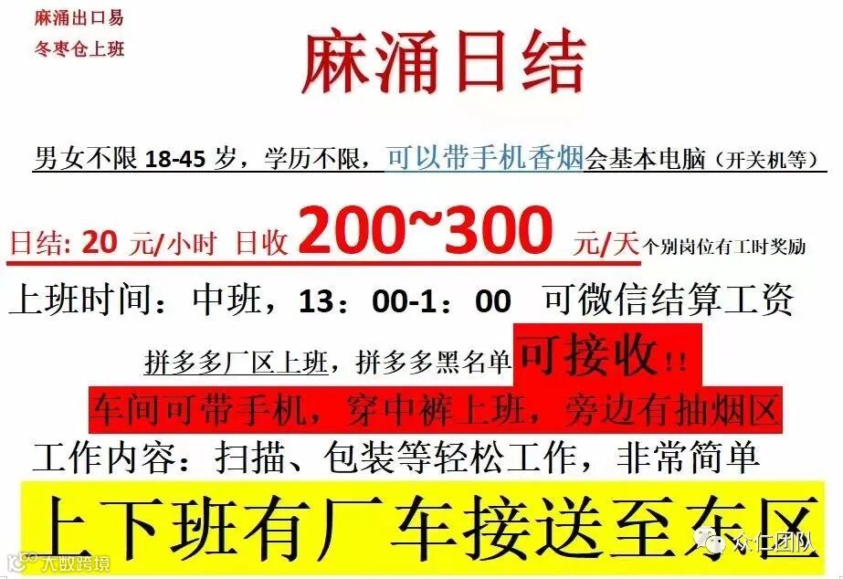 注意事项:厂内有抽烟区,不可乱扔烟头跟杂物,可银行卡/微信结工资。