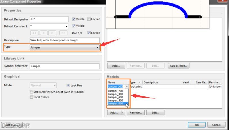 2.跳线部件必须具有其类型设置为跳线。只有在将Footprint放置到PCB工作区中之后才能设置此选项,它无法在PCB Library Editor中设置。