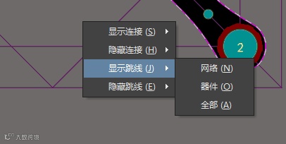 在版本高一些的AD中,"视图”菜单包括一个新的跳线子菜单,允许对跳线组件的显示进行控制。且在网表弹出菜单(n快捷方式)中添加子菜单,包括用于控制跳线连接线的显示的选项。