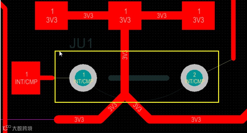 做完以上的步骤后,在这个阶段,没有自动的网络继承;在工作区域中放置一个跳线之后,需要手动在pad对话框中设置其中一个pad的net属性。