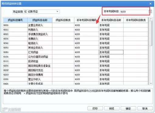 右上角输入本年利润科目编码4103后,选中表格中空白列即可自动匹配本年利润科目编码和名称