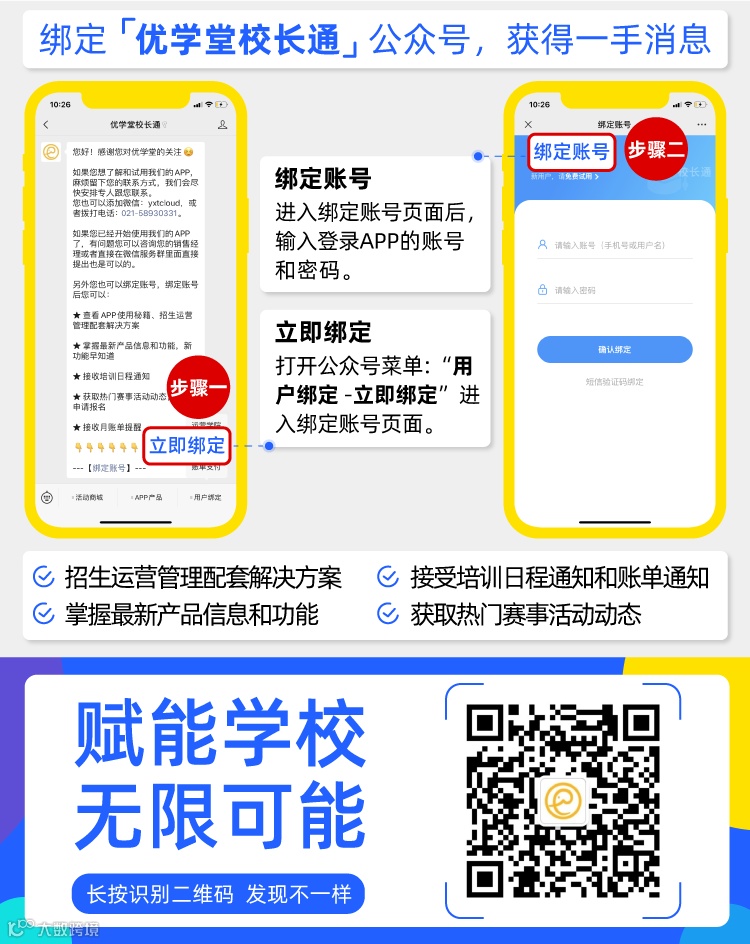 答:学校报名参与活动可以提取活动物料,路径:【优学堂校长通公众号-活动中心-学校活动—更多-活动推广-推荐语/活动海报/物料提取】