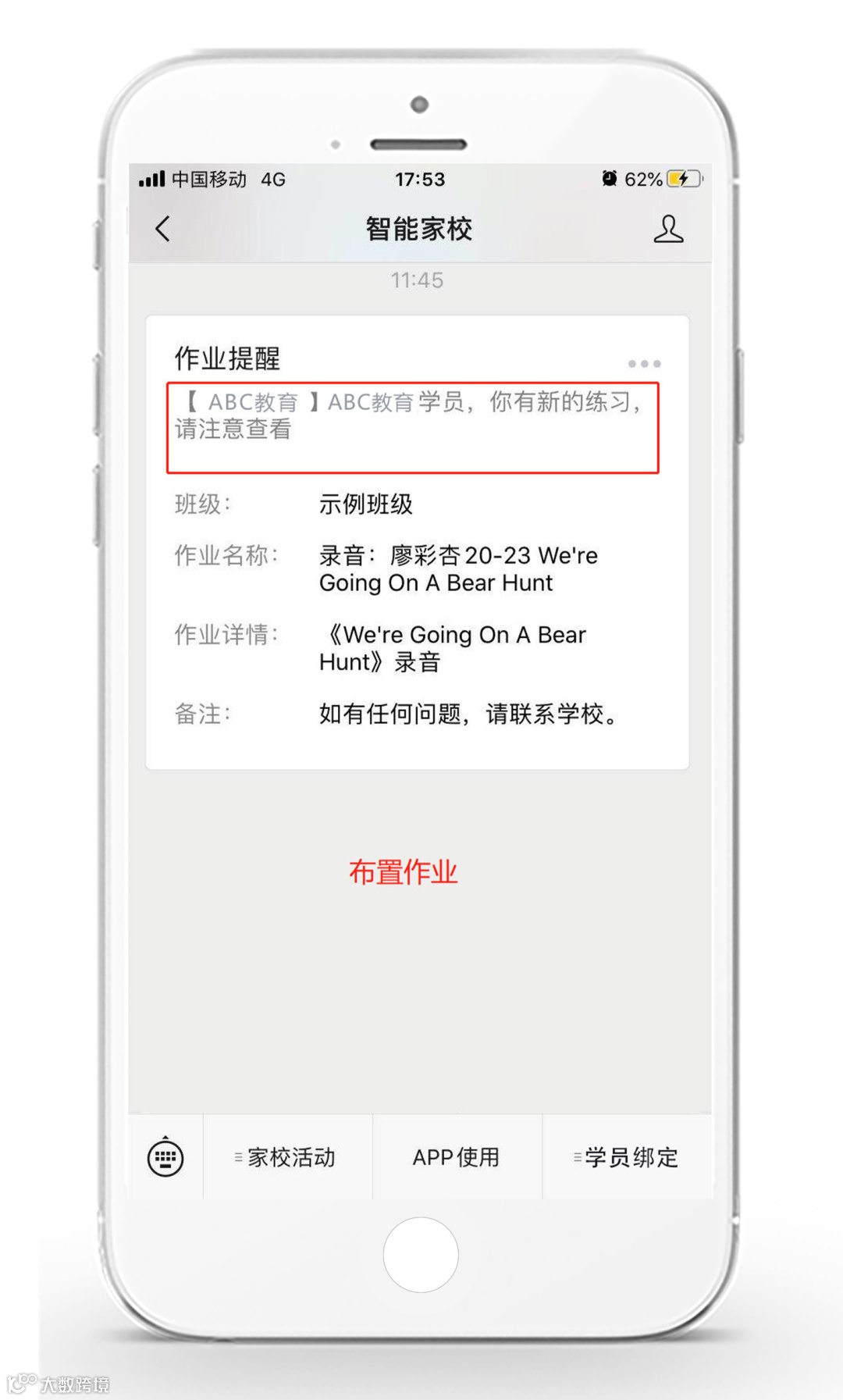 学校通知和班级通知的内容在APP进行通知后,公众号会自动发出通知内容。