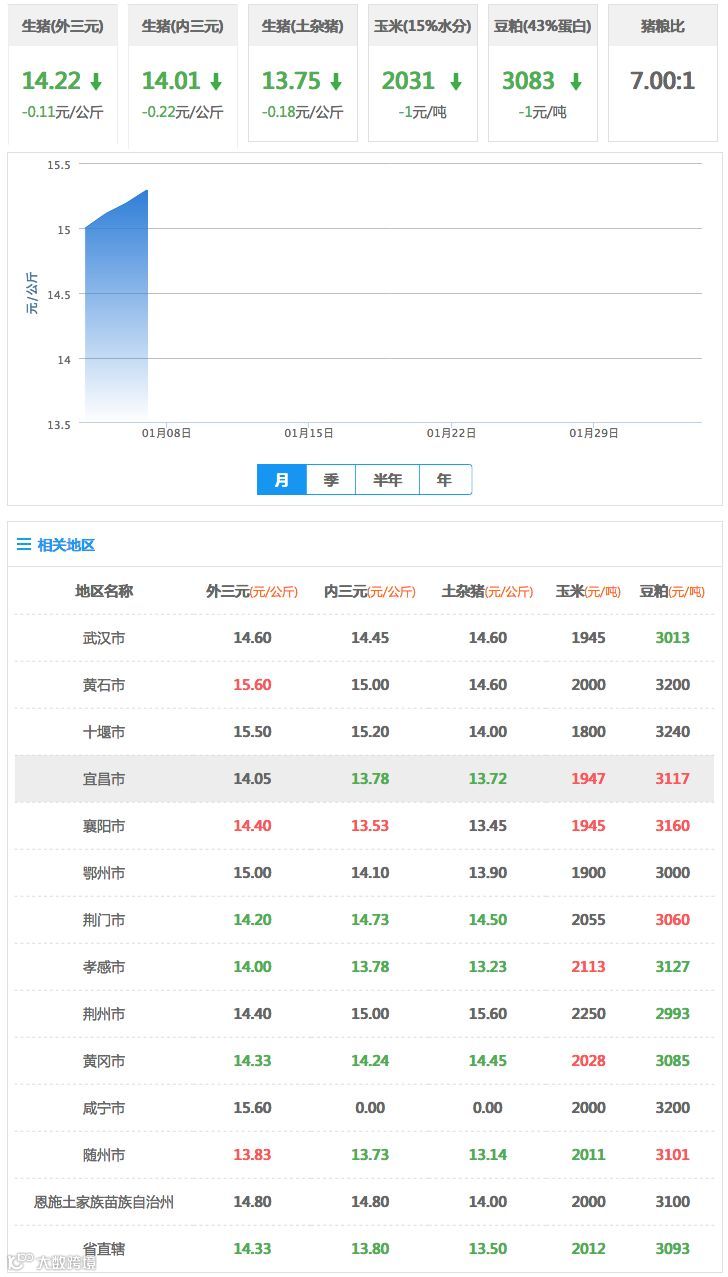 【猪价】1月31日湖北地区最新猪价信息