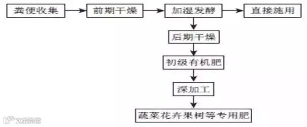 养殖场经过粪便收集、干燥、发酵、添加、制粒、灌装等过程,可根据用户需求生产专用有机肥,有机肥生产可实现商品化,便于长距离运输。