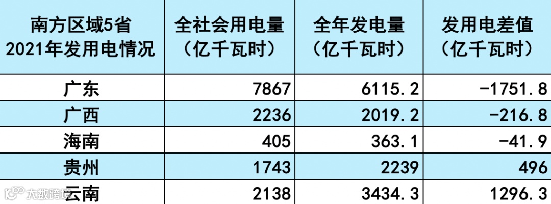 如下图,对比上述南方5省的发用电数据:从2021年全社会用电量看,广东是受电大省,是南方五省的负荷高地。贵州和云南为电力送电大省。根据央视新闻有关报道,南网电力调控中心副总经理蔡葆锐认为:“在电力市场中,能源禀赋强的地区把电买到负荷中心实现经济效益,有利于发挥市场在资源优化配置中的决定性作用。”