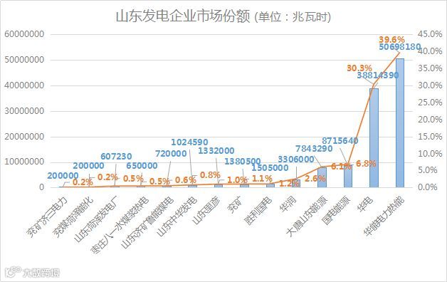在2019年年度双边协商中,中国华能集团有限公司(以下简称华能)旗下的发电厂所占市场份额高达39.6%,在它之后分别是华电集团的30.3%,大唐山东能源的6.1%,国电能源的6.8%。这些企业无一不是央企发电巨头。