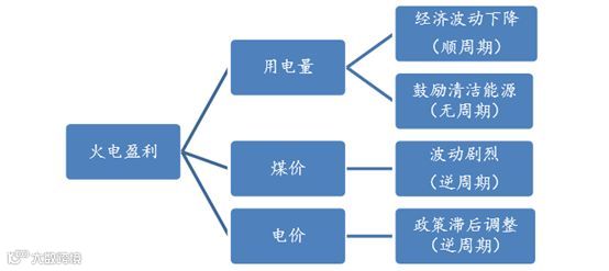 随着世界能源格局发生变化,天然气占比有所提高,煤炭供需市场也随之变化,同时,中国的煤炭生产企业在前几年的高利润下,扩充产能,使得短期煤炭供应过剩,在国内长期经济潜在增速开始降低的新时期,煤炭价格可能长期处于相对低位,且呈现较强的周期性波动。火电企业在发电量趋缓之后,盈利能力取决于电煤价格的波动,导致其业绩呈现弱周期,出现同宏观周期相比滞后的效应。