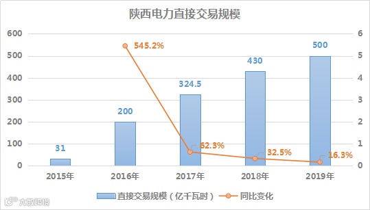 《陕西省2019年上半年电力直接交易实施方案》中规定,陕西省全年电力直接交易规模500亿千瓦时,其中上半年交易电量规模250亿千瓦时。