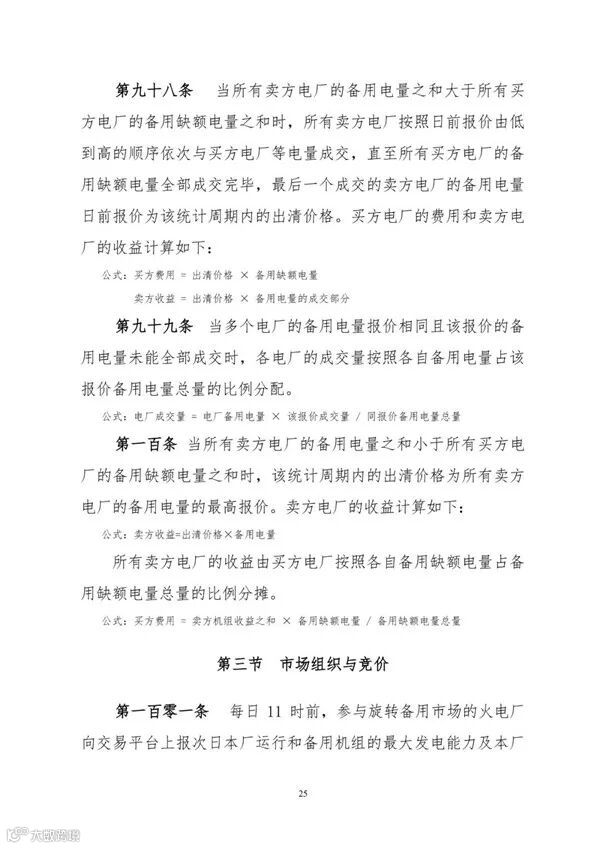 1. 增设旋转备用交易品种,实现辅助服务市场“压低谷、顶尖峰”全覆盖。同时为激励和引导火电厂主动提升顶尖峰能力,新规则设计了尖峰旋转备用市场日前竞价机制,火电厂日前报最大发电能力及备用售价,每十五分钟为一个统计周期。东北旋转备用交易以发电厂顶尖峰能力作为交易标的物,机制上有三个创新点:①.实行东北全网统一平台交易,完全打破了辅助服务的省间壁垒。②.明确“能上能下”的机组才能获得全部辅助服务收益,向火电机组能力提出了完整的灵活性标准。③.机组发电能力考核采用系统随机自动抽查方式,减少调度机构人工操作量,也最大限度避免人为因素干扰。