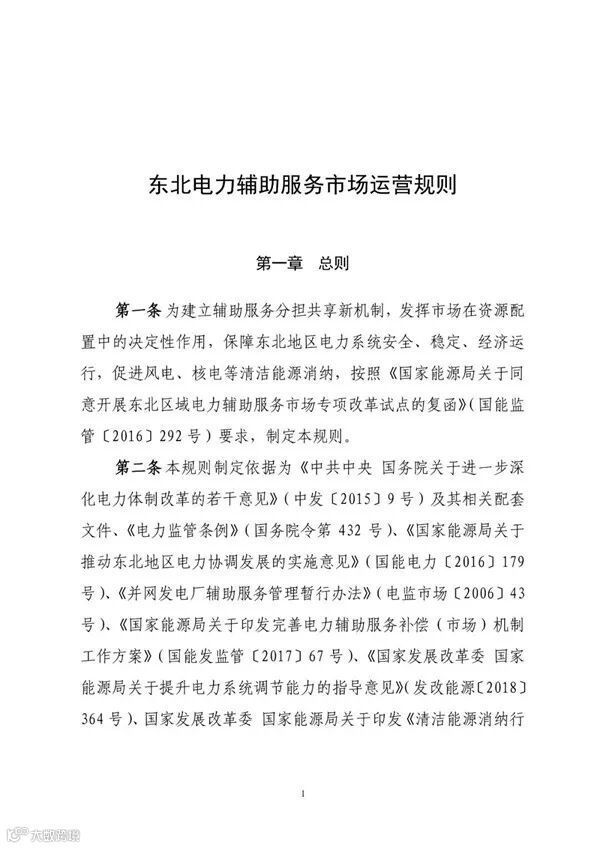 正式印发《东北电力辅助服务市场运营规则(暂行)》 |