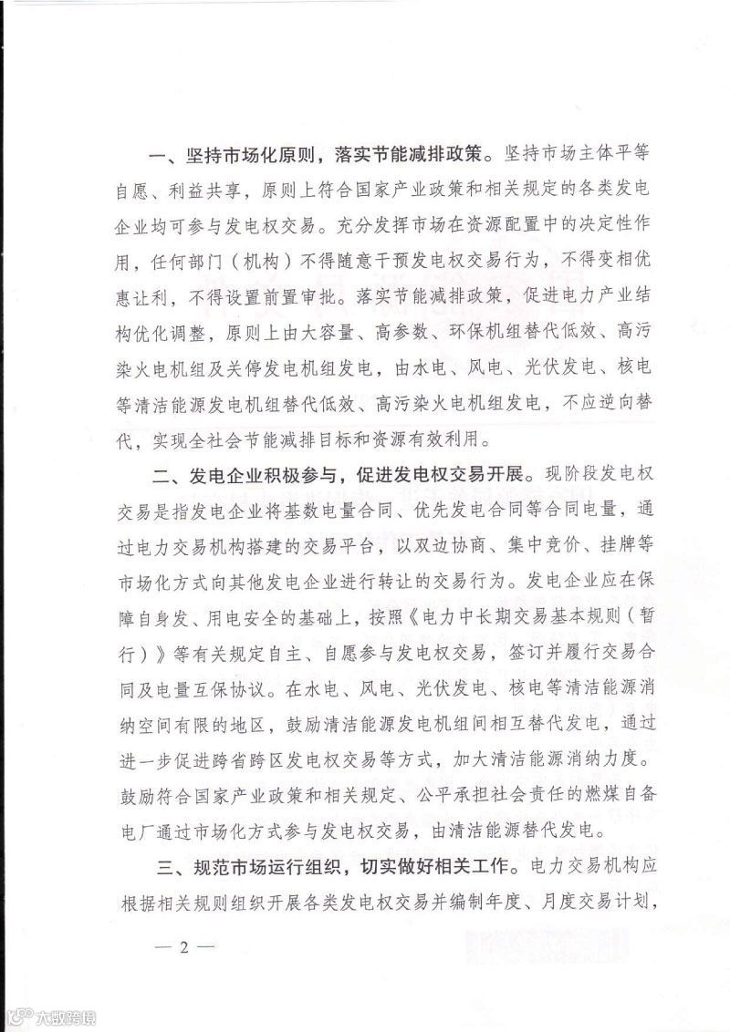 任何部门(机构)不得随意干预发电权交易,原则上由大容量、高参数、环保机组替代低效、高污染火电机组及关停发电机组发电,由水电、风电、光伏发电、核电等清洁能源发电机组替代低效、高污染火电机组发电,不应逆向替代。