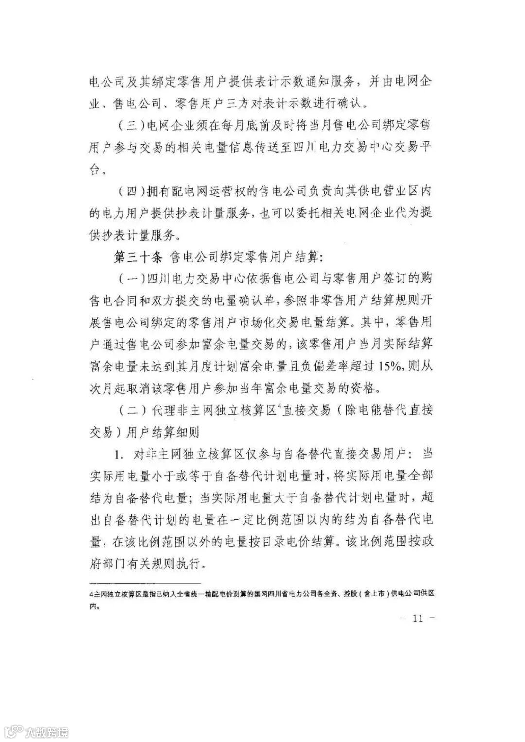 售电公司与零售用户之间的交易暂时按照“固定价”方式约定交易电价,未来将引入更多的定价方式。除此之外,四川售电公司还需要做好准备,未来将引入履约保函,按照各省通行的规则,保函缴纳的金额就与售电公司的信用等级联动,这就要求四川的售电公司要注重自身信用建设,比如前不久被四川能监办通报的冒充大用户行为极有可能影响售电公司的信用评级,这可能导致保函金额的缴纳比例上升。