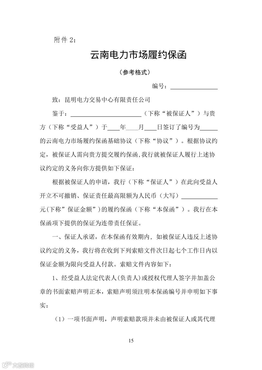 3月2日,昆明电力交易中心发布《云南电力市场交易信用保证管理办法(试行)》,明确各市场主体参与交易时所需准备的信用担保。