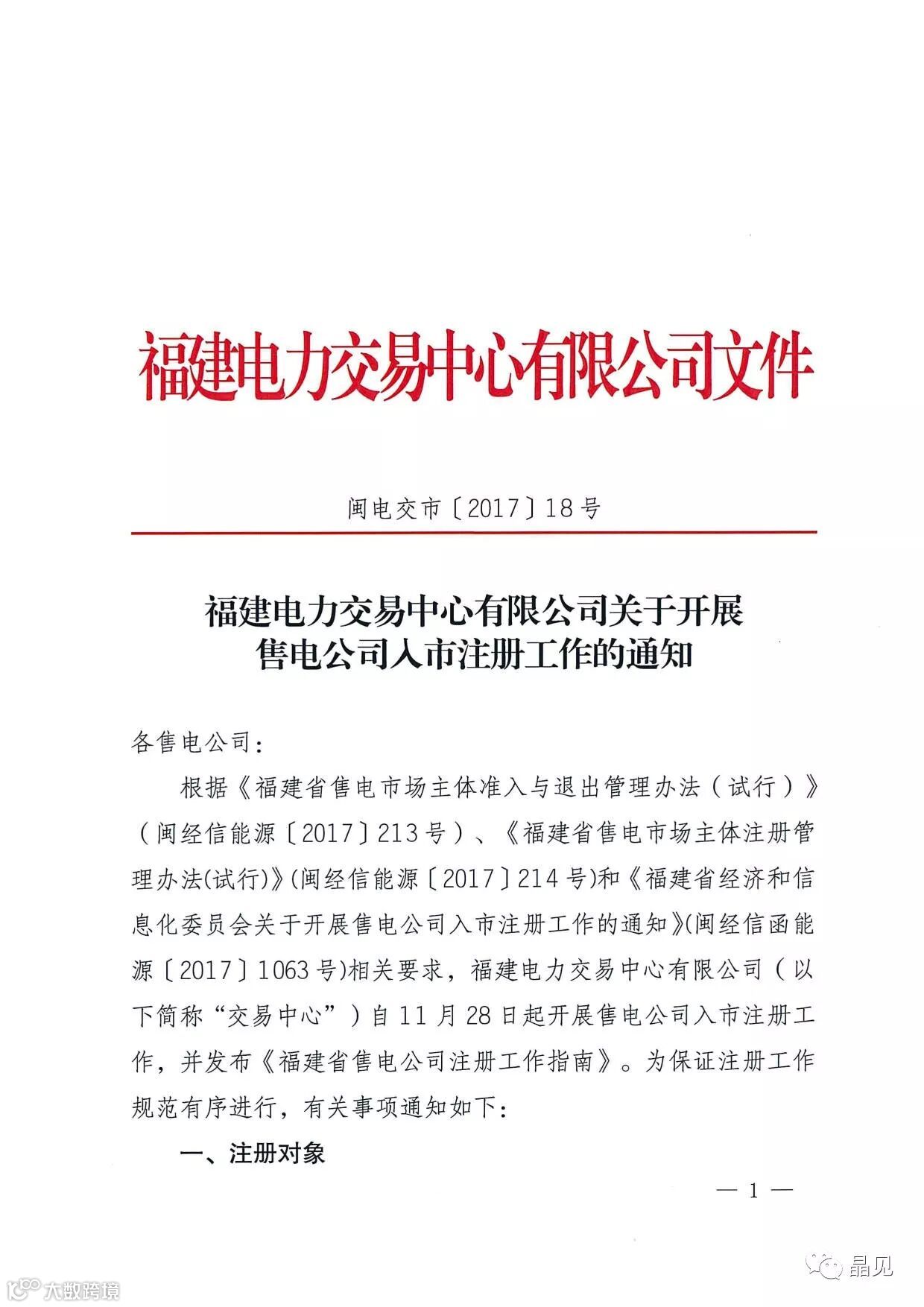 昨天(11月27日),晶见刚说完福建准备开始售电公司入市注册了。而今天(11月28日),福建交易中心就发布了《福建交易中心有限公司关于开展售电公司入市注册工作的通知》。正式宣布从2017年11月28日起开展售电公司入市注册工作。